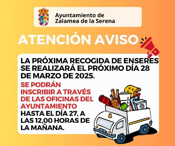 ATENCIÓN AVISO Recogida de enseres 28 de Marzo 2025