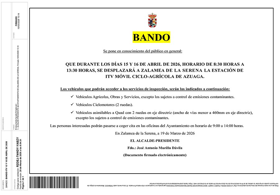 BANDO 15 Y 16 DE ABRIL DE 2026 ITV MÓVIL CICLO-AGRÍCOLA