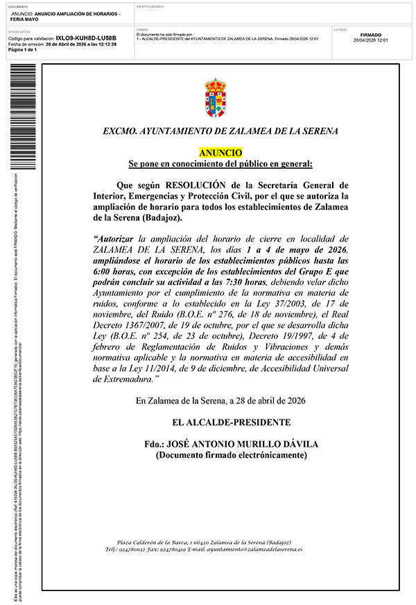 • BANDO AMPLIACIÓN HORARIO ESTABLECIMIENTO FERIA DE MAYO 2026