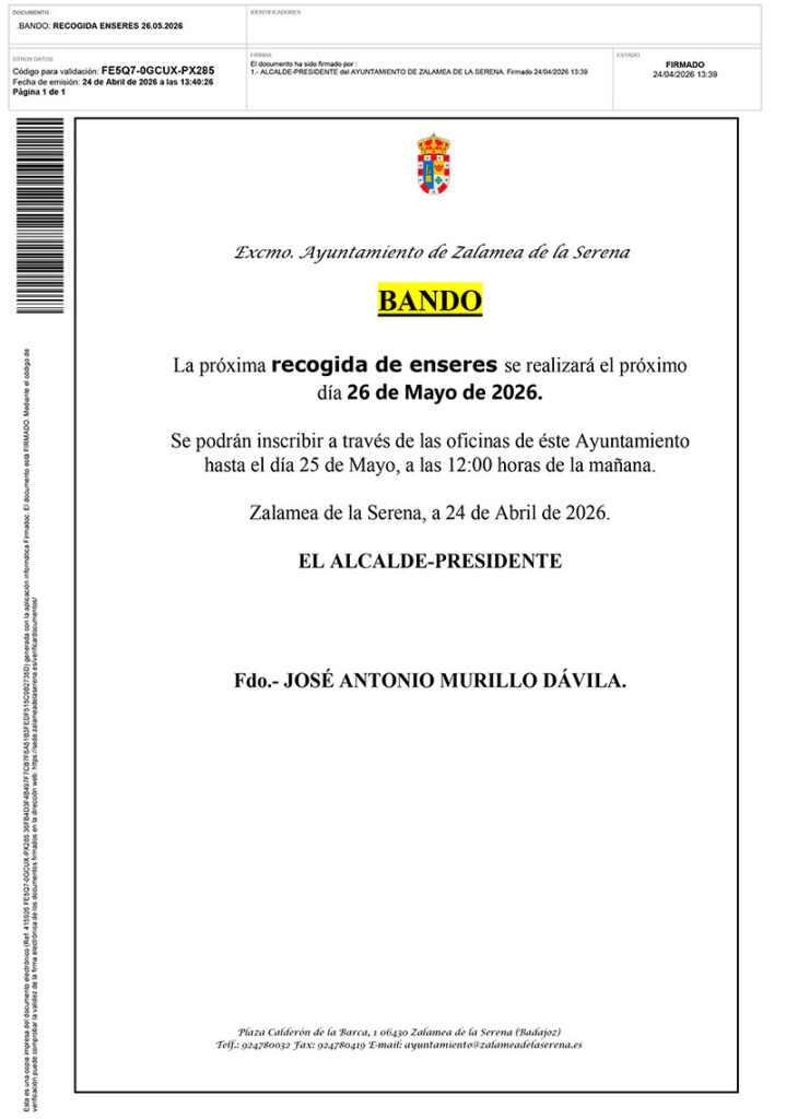 • BANDO RECOGIDA DE ENSERES PARA EL MES DE ABRIL 2026