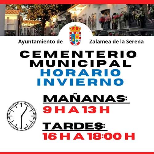 Horario Invierno Cementerio Municipal Zalamea de la Serena 2024