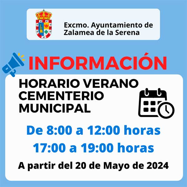 Horario Verano Cementerio Municipal Zalamea de la Serena.