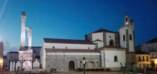 Iniciada la obra que permitirá que el Distylo no sea el único monumento iluminado en la Plaza de la Constitución. La Parroquia Nuestra Señora de los Milagros, del siglo XIII,también lo hará de la misma forma a partir de la semana que viene. La luz contra la piedra ofrece un bonito contraste que pone en valor el Patrimonio. No va a ser el último monumento iluminado.