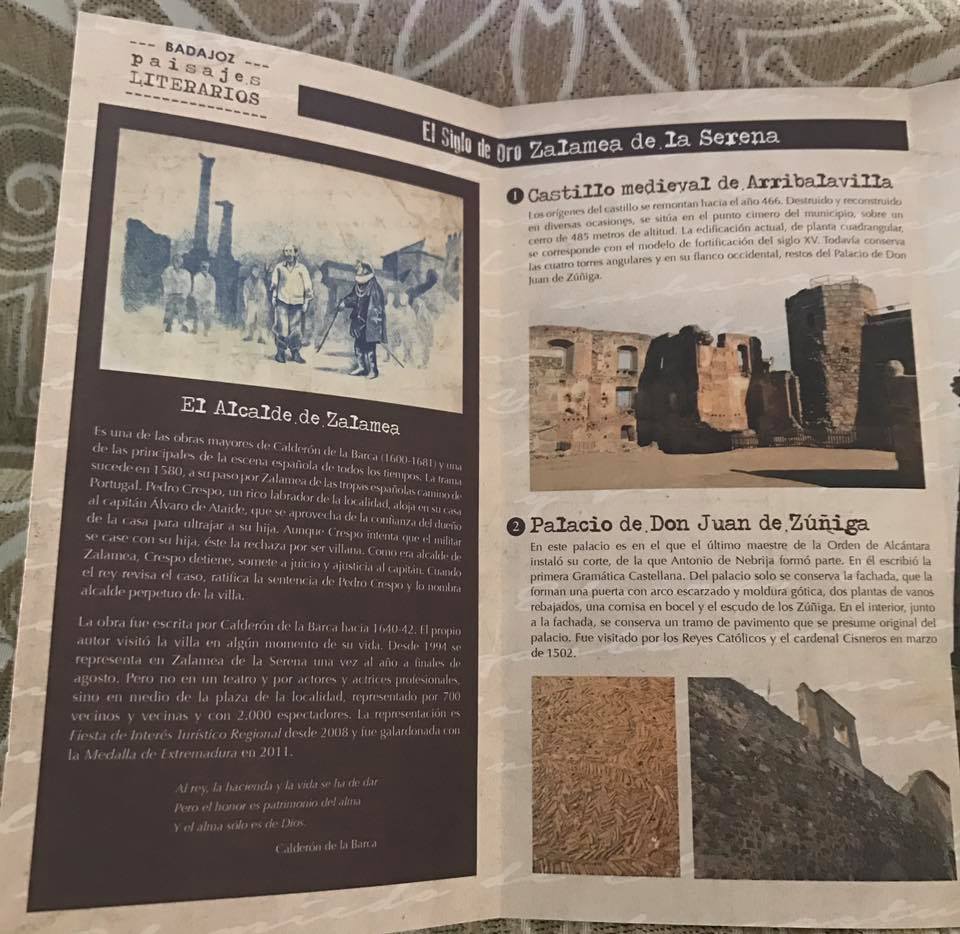 Nuevos folletos correspondientes a la Ruta «El Siglo de Oro» de Zalamea en relación a Calderón y Nebrija. Otro recurso turístico más, lo encontraréis en la Oficina de Turismo y de la Mancomunidad de la Serena