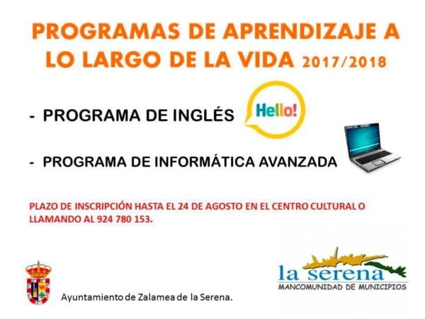 A partir de Octubre o Noviembre se realizaran en Zalamea los Programas de Aprendizaje a lo largo de la vida.