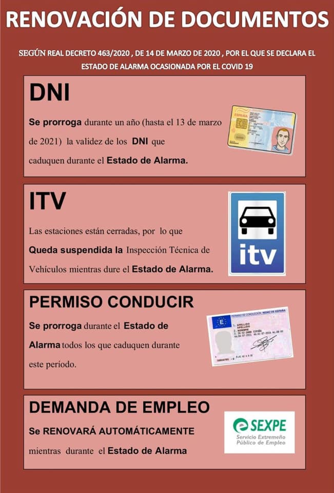 Renovación de Documentos durante el estado de alarma Covid-19